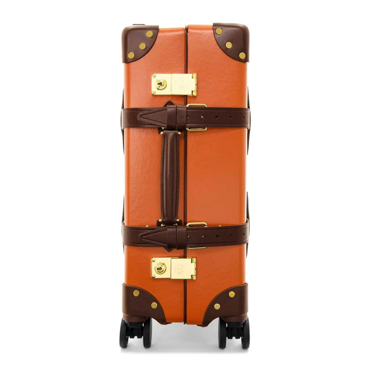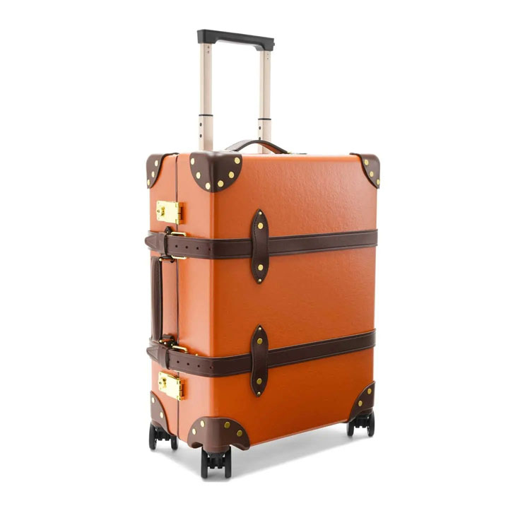 In marmalade orange fibreboard and finished with classic brown leather trim, the Centenary Carry-On reflects a refined British style. Balancing heritage design with modern performance, effortless four-wheel glide ensures seamless movement through airports and grand hotel lobbies. Thoughtfully proportioned for cabin travel, it’s the ideal companion for shorter journeys. Bespoke your case with handcrafted initials for a personalised finish.