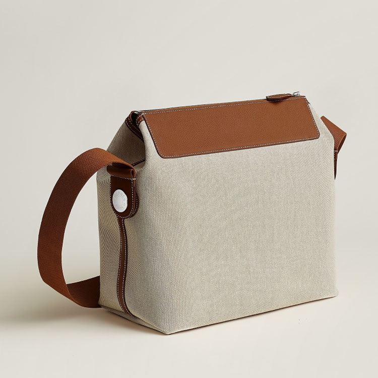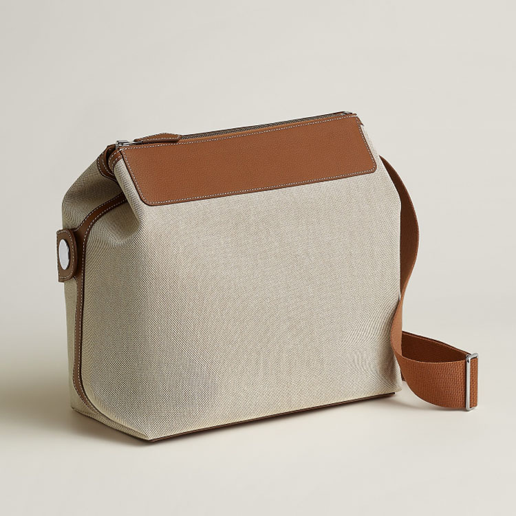 Made to complement the R.M.S Cabin suitcase series, this 12H holdall is designed for everyday travel ease. Compact and lightweight, it’s crafted in H canvas with taurillon Regate leather in a neutral colourway. A zip closure secures the main compartment, complemented by a zipped interior pocket for smaller essentials. Designed for versatility, it folds flat to fit inside a suitcase and can be attached to a telescopic handle via an integrated strap.
