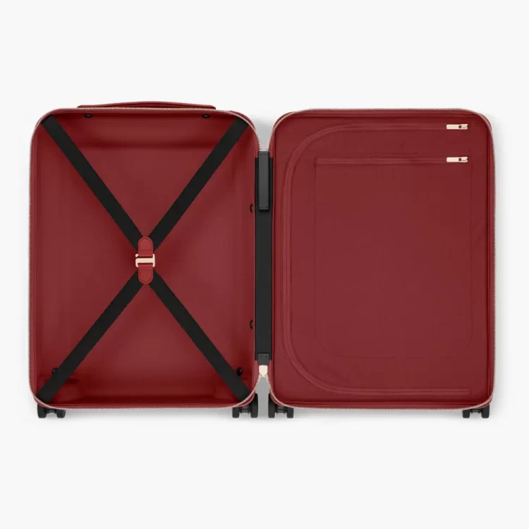 A bold statement in Monogram red epi leather, the Horizon 55 redefines cabin luggage with Louis Vuitton’s signature blend of form and function. Its innovative external cane system creates a perfectly flat interior to maximise every centimetre of space. Leather corners and champagne-tone hardware speak to classic Maison codes, while four compact wheels offer smooth, silent glide. Inside, a structured divider and elastic straps keep belongings secure and elegantly arranged.