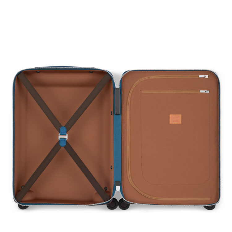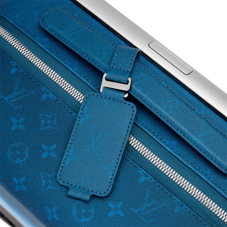 The Horizon 55 suitcase and matching Keepall Bandoulière 50 form a visually impactful travel pairing. Crafted in Monogram Pigment coated canvas, this Horizon 55 rolling suitcase reinterprets the Monogram motif through a subtle gradient inspired by Indian textiles. The shift from vivid colour to classic Ebene highlights the House’s craftsmanship in a contemporary palette. Cabin-sized yet spacious, its external cane structure creates a generous interior to maximise on packing space.