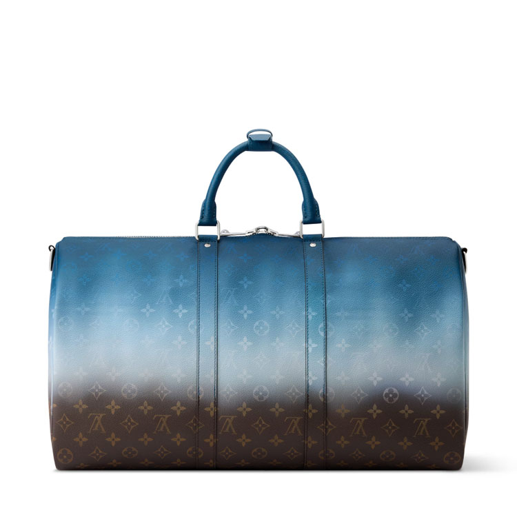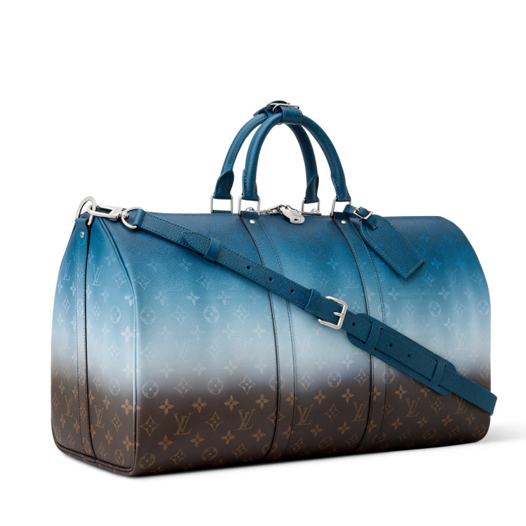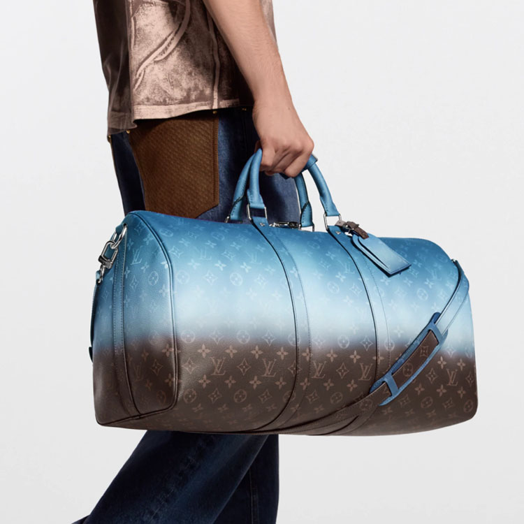 Inspired by India’s vibrant textiles, this Keepall Bandoulière 50 in Pigment coated canvas reinterprets the Monogram Ebene motif through a subtle gradient across its surface. Trimmed in cowhide leather, with top handles and a removable strap finished in the deepest tone of the gradient, it balances practicality with refined design. A double zip closure secures the main compartment, complemented by a zipped interior pocket, padlock, and leather name tag.
